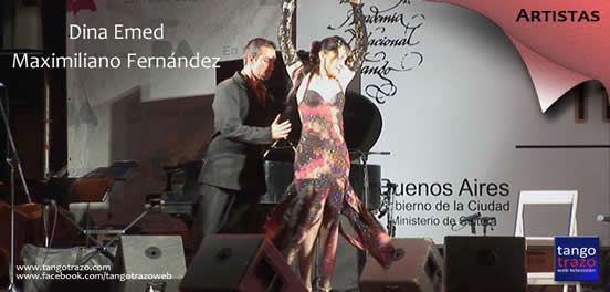 Dina Emed, es acompañada por el bailarín milonguero Adolfo Costabile, extraido de la milongas de Buenos Aires y verdadero exponente en su género.